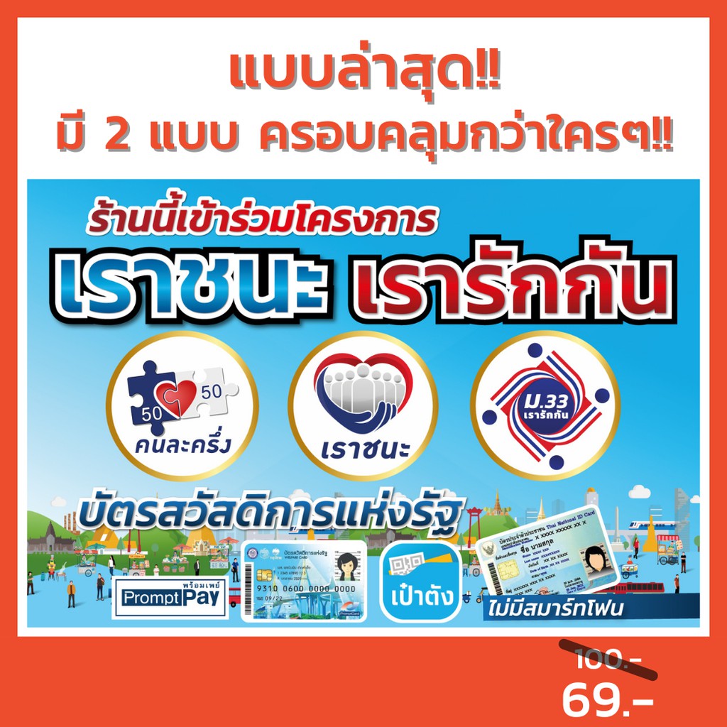 ร้านค้าสามารถรับเงินจากสิทธิคนละครึ่ง ผ่านแอปฯ ถุงเงิน หลังจากผ่านการตรวจสอบกิจการและ ยอมรับเงื่อนไขโครงการ. มาตรการจ่ายเงินเยียวยา ม.33 เรารักกัน เราชนะ รวมถึง คนละครึ่ง อยู่ระหว่างดำเนินการในขั้นตอนต่างๆ และเปิดให้ประชาชนใช้จ่ายเงินได้ผ่าน. 1,547 likes · 322 talking about this. หน้าแรก / คนละครึ่ง / เงินเยียวยารอบใหม่. ร้านค้ารายย่อย ในชุมชนและตลาด ต่างเข้าร่วมโครงการ เราชนะ ประชาชนผู้มีสิทธิ์จาก บัตรสวัสดิการแห่งรัฐ ต่อเนื่อง คนละครึ่ง เริ่มใช้จ่าย. เว็บไซต์ www.เราชนะ.com ระบุ ร้านค้าคนละครึ่ง และธงฟ้าประชารัฐ ไม่ต้องลงทะเบียนเราชนะใหม่ แค่อัปเดตแอปฯ ถุงเงินให้เป็นปัจจุบันพอ 3,500 บาท ตลอดโครงการ (ใช้สิทธิได้ถึง 31 มี.ค.2564) เราชนะ : แนะวิธีใช้จ่าย เราชนะ ผ่านแอปพลิเคชัน เป๋าตัง ขั้นตอนไม่ยุ่งยาก คล้ายกับโครงการ คนละครึ่ง. ทางโครงการฯ จะยังดำเนินการตรวจสอบ และอนุมัติกิจการต่อเนื่องจนถึงวันที่ 30 เม.ย. งานคุณภาพจากผู้ผลิตเอง ป้ายไวนิล พร้อมส่งวันต่อวัน งานพิมพ์ out door ถูก ทน สวย!! ปลัดกระทรวงการคลัง ชี้แจงกรณีหากลงทะเบียน เราชนะ แล้ว จะไม่มีรับสิทธิทับซ้อนกับ คนละครึ่ง โดยจะถูกตัดสิทธิออก. วิธีใช้ คนละครึ่ง และ เราชนะ บน lineman ไม่ต้องออกจากบ้านก็ใช้สิทธิ์ได้! Size 40 × 60 cm100 baht (eyelet piercing 4 corners.