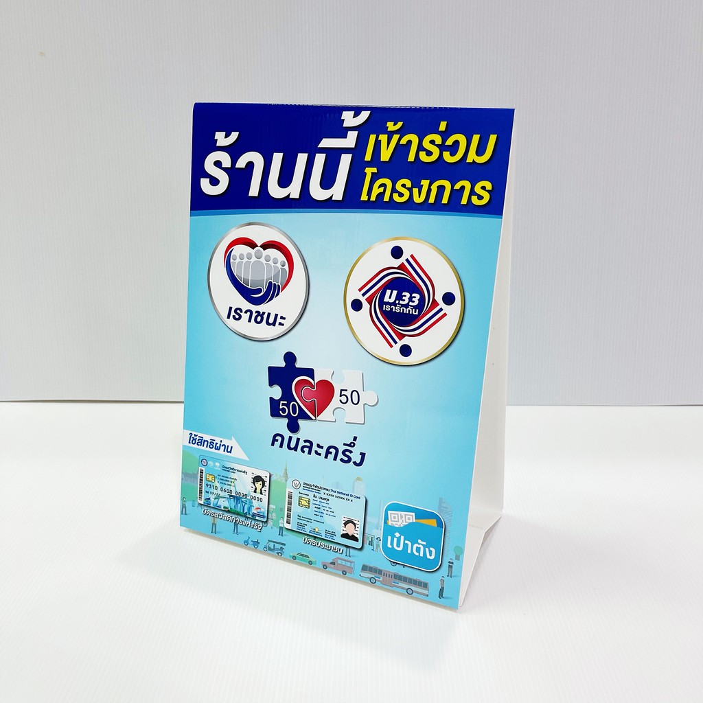 ทางโครงการฯ จะยังดำเนินการตรวจสอบ และอนุมัติกิจการต่อเนื่องจนถึงวันที่ 30 เม.ย. วิธีใช้ คนละครึ่ง และ เราชนะ บน lineman ไม่ต้องออกจากบ้านก็ใช้สิทธิ์ได้! ร้านค้าสามารถรับเงินจากสิทธิคนละครึ่ง ผ่านแอปฯ ถุงเงิน หลังจากผ่านการตรวจสอบกิจการและ ยอมรับเงื่อนไขโครงการ. Size 40 × 60 cm100 baht (eyelet piercing 4 corners. 3,500 บาท ตลอดโครงการ (ใช้สิทธิได้ถึง 31 มี.ค.2564) เราชนะ : ขนาด 40×60 cm ราคา 180 บาท (รวมจัดแล้ว) ขนาด 60×100 cm ราคา 200 (รวมจัดแล้ว) 'เราชนะ' กลุ่ม 3 ลงทะเบียนแล้ว ยังไม่ได้สิทธิ 7,000 บาท ต้องเช็คผลที่ www.เราชนะ.com ก่อน. Servicing to make vinyl signs size 30 × 30 cm 45 b. เช็กที่นี่ คนละครึ่งร้านค้า เปิดเงื่อนไขผู้ค้ารายใดบ้างมีสิทธิ์ร่วมโครงการ เราชนะ ที่เปิดให้ประชาชนลงทะเบียน www.เราชนะ.com แนะวิธีใช้จ่าย เราชนะ ผ่านแอปพลิเคชัน เป๋าตัง ขั้นตอนไม่ยุ่งยาก คล้ายกับโครงการ คนละครึ่ง. ร้านค้ารายย่อย ในชุมชนและตลาด ต่างเข้าร่วมโครงการ เราชนะ ประชาชนผู้มีสิทธิ์จาก บัตรสวัสดิการแห่งรัฐ ต่อเนื่อง คนละครึ่ง เริ่มใช้จ่าย. หน้าแรก / คนละครึ่ง / เงินเยียวยารอบใหม่. หน้าแรก / เราชนะ / กดรับสิทธิเราชนะในแอปเป๋าตัง.